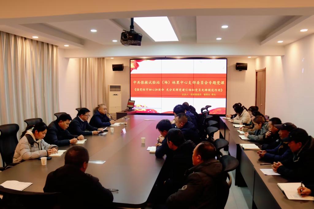 2025年12月25日,党委委员、副院长李允赴张掖试验站(场)讲授专题党课。站(场)领导班子成员,林果中心党支部全体党员、青年干部等30余人参加。